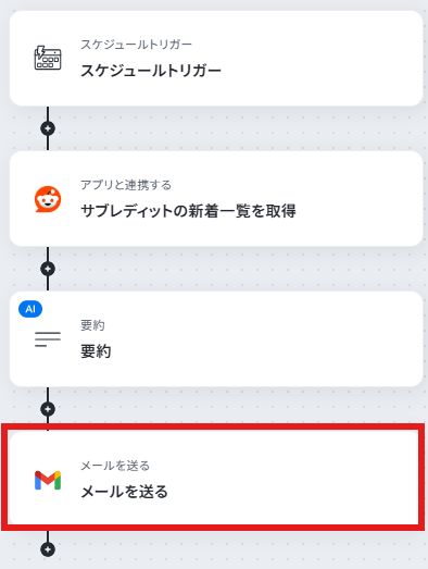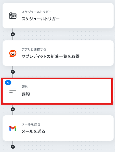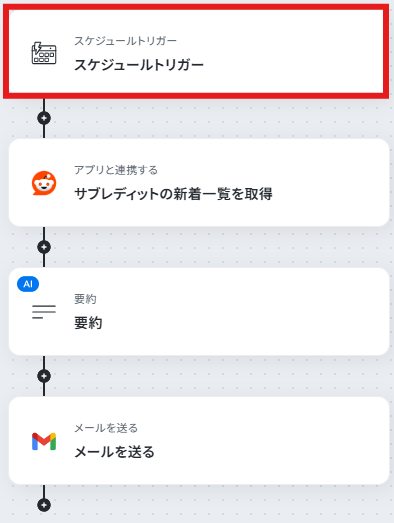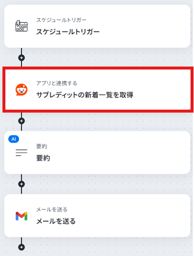 それではここから代表的な例として、定期的にRedditから指定したサブレディットの新着投稿一覧を取得し、その要約をGmailで自動送信するフローを解説していきます!