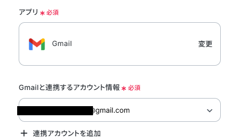 アプリはデフォルト設定のまま、アカウント情報は、連携したいアカウントが選択されているか確認してください。