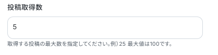 投稿取得数は任意のものを入れてください。今回は「5」にしています。