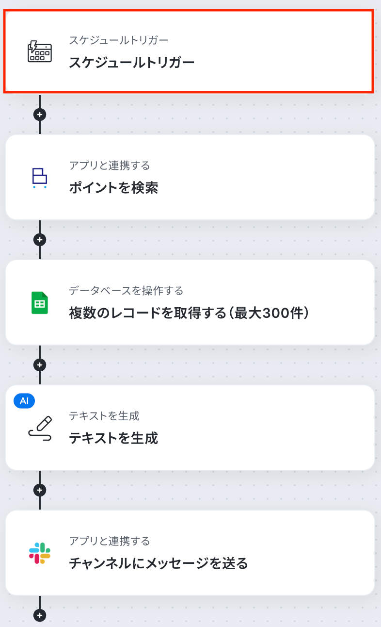 スケジュールトリガーの設定については、以下のヘルプページをご確認ください。