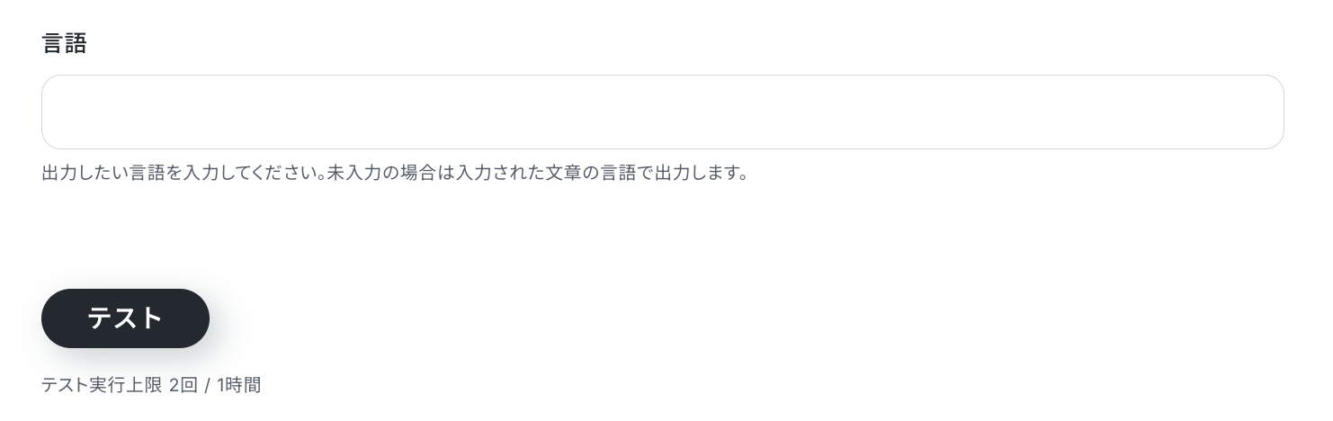 入力が完了したら「テスト」をクリックして、設定した内容でテキストが正しく生成されるか確認しましょう。