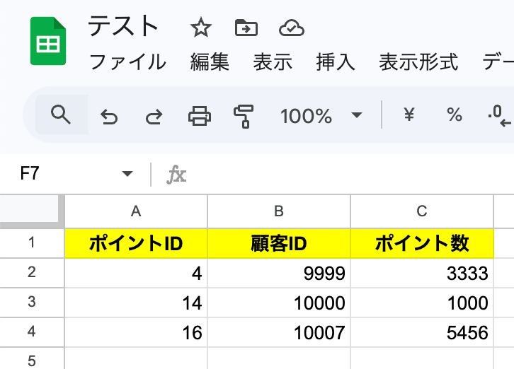 事前準備としてGoogle スプレッドシートでレコードを用意しておきましょう。