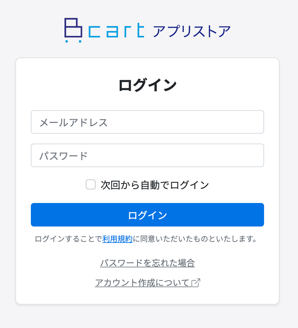 以下の画面が表示されるので、メールアドレスとパスワードを入力し、「ログイン」をクリックします。