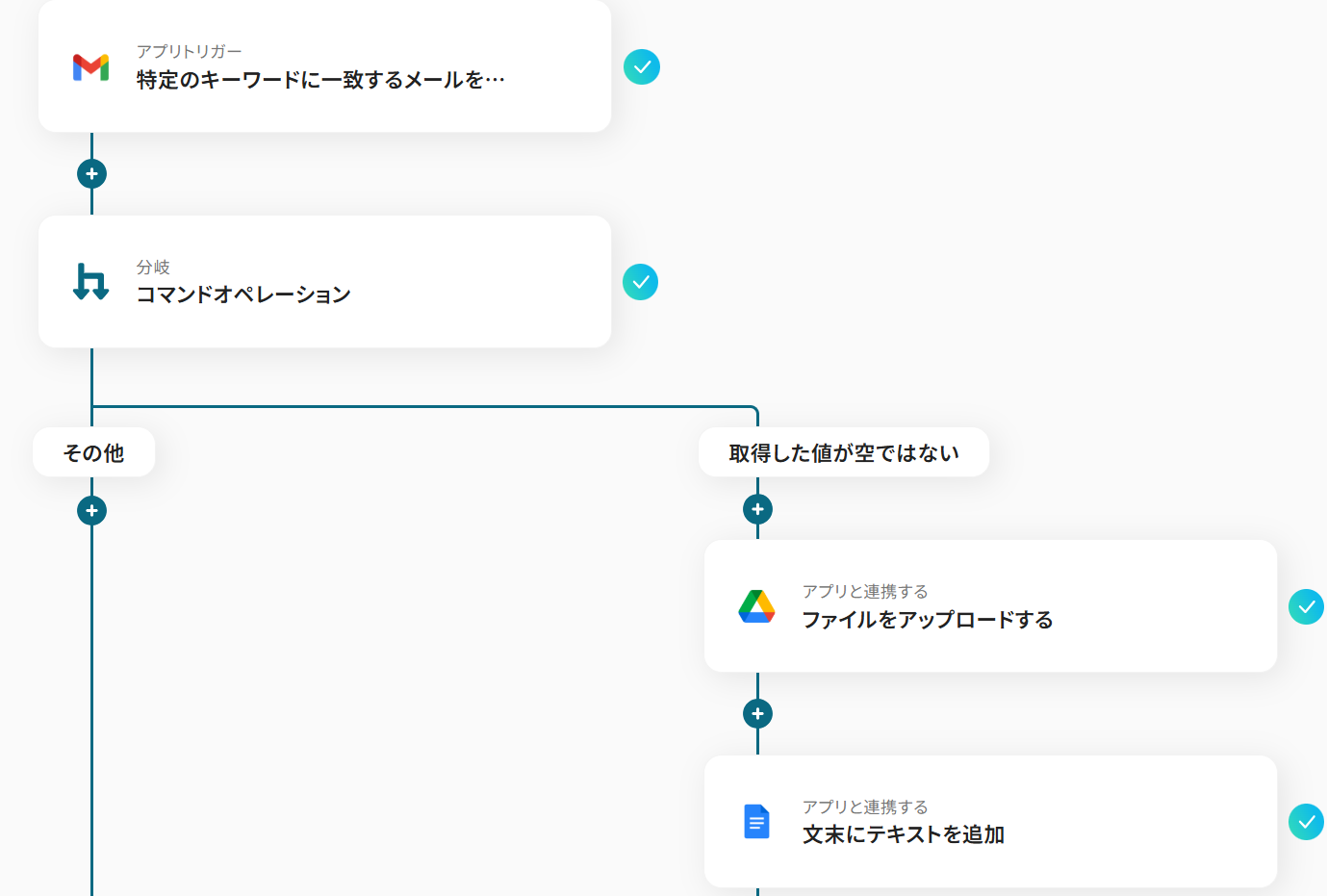 それではここから代表的な例として、Gmailで受信したファイルをGoogle Driveにアップロードし、管理用のドキュメントを更新するフローを解説していきます!