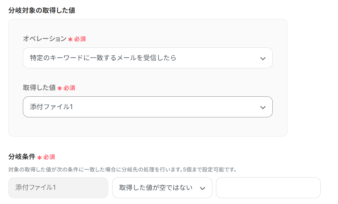 ・分岐はミニプラン以上のプランでご利用いただける機能(オペレーション)となっております。フリープランの場合は設定しているフローボットのオペレーションはエラーとなりますので、ご注意ください。