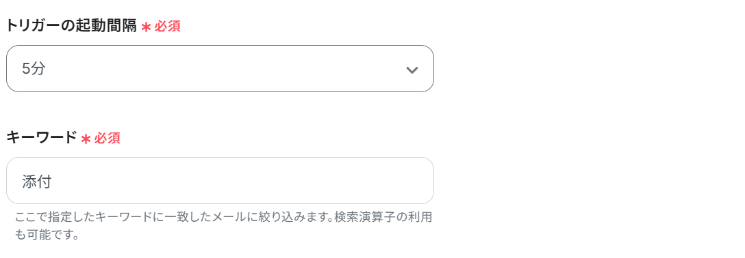 ・トリガーは5分、10分、15分、30分、60分の間隔で起動間隔を選択できます。