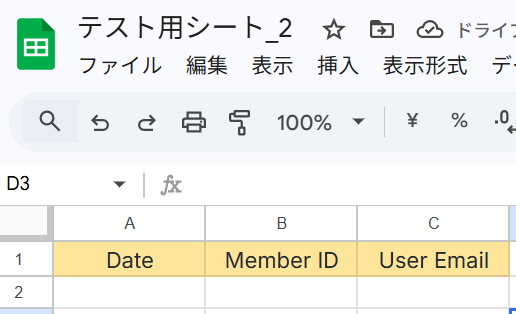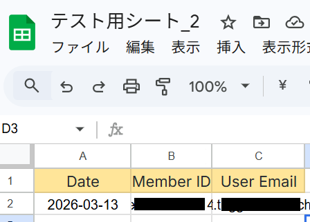 指定したGoogle スプレッドシートを見ると該当の値が追加されています。