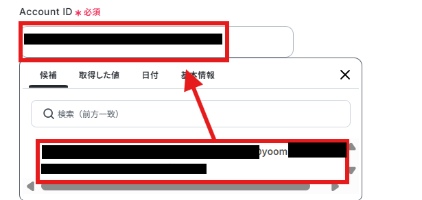 Account IDは候補に表示されますので、そちらから選択しましょう。