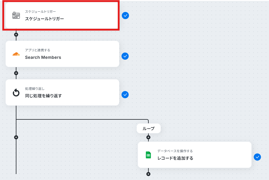 それではここから代表的な例として、毎月Cloudflareのアカウントを自動検索して、Google スプレッドシートに記録するフローを解説していきます!