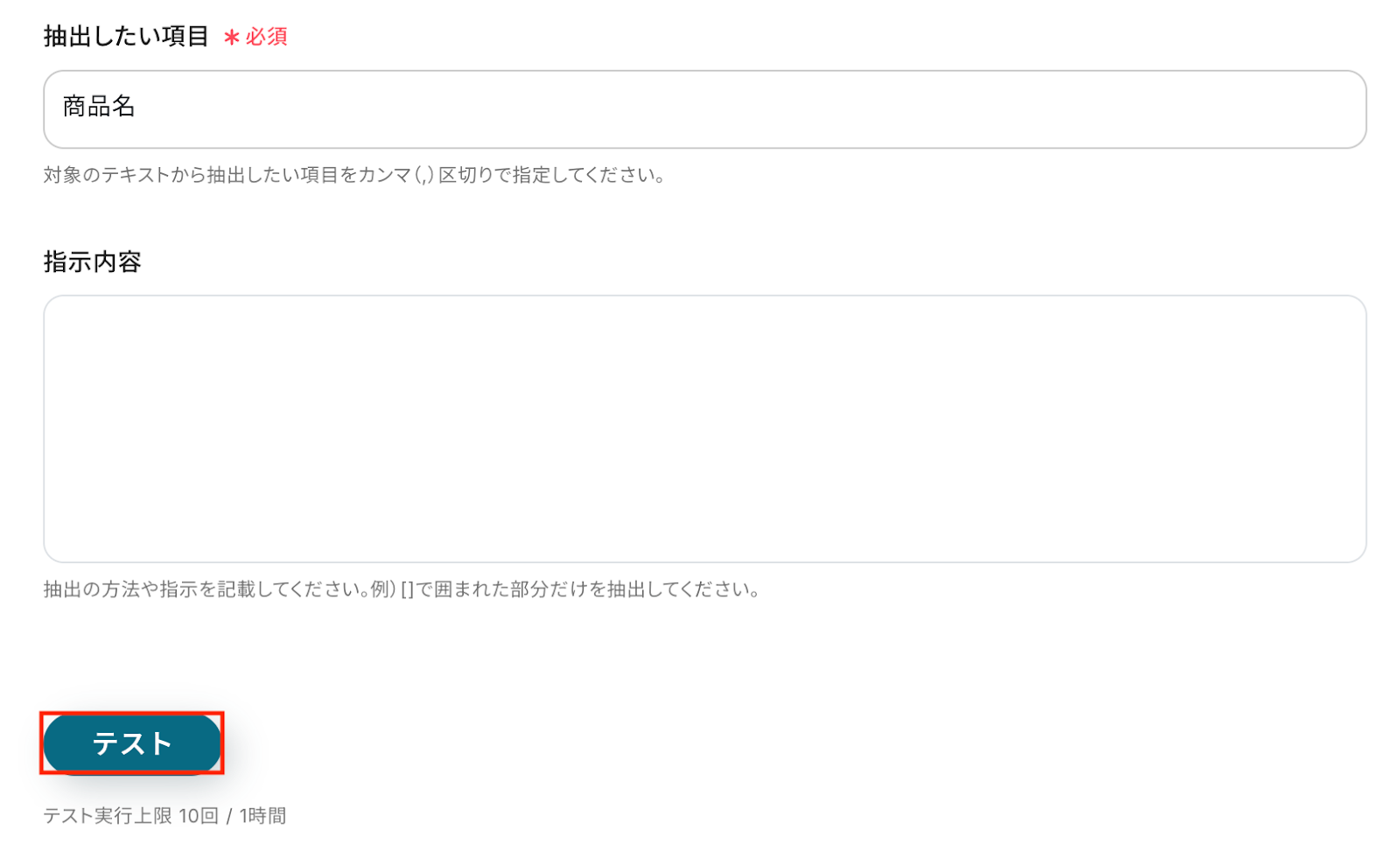 入力が完了したら、設定内容とトリガーの動作を確認するため「テスト」をクリックします。