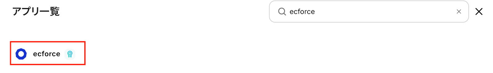 新規接続をクリックしたあと、アプリのメニュー一覧が表示されるのでecforceと検索し、対象アプリをクリックしてください。