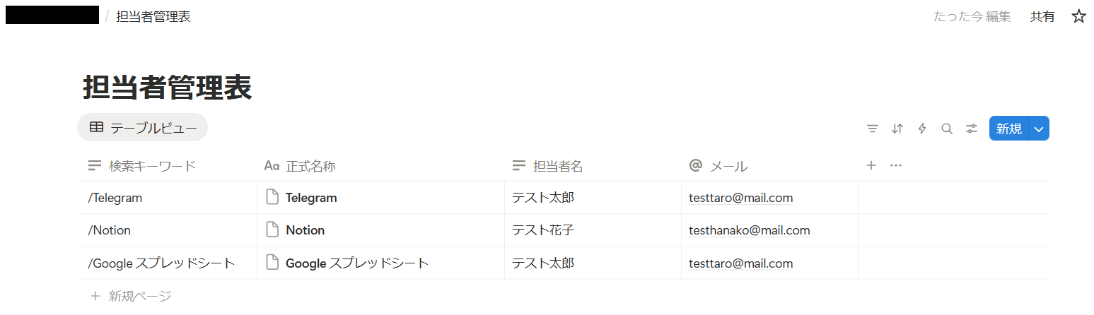 左端の項目はNotionのデータベースに設定している項目名が表示されます。