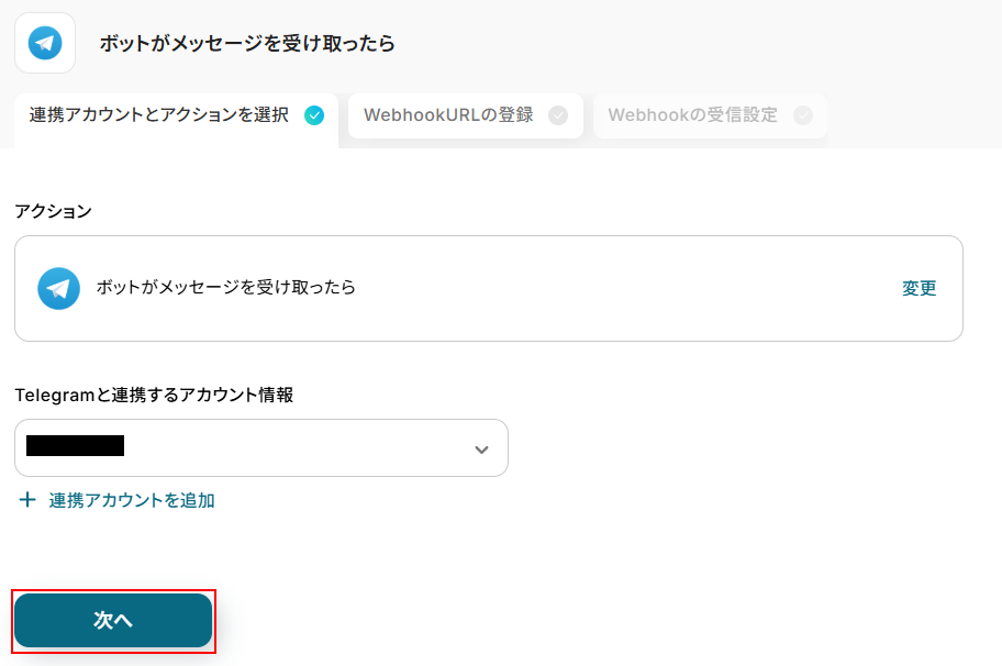 ステップ3:Telegramのトリガー設定
