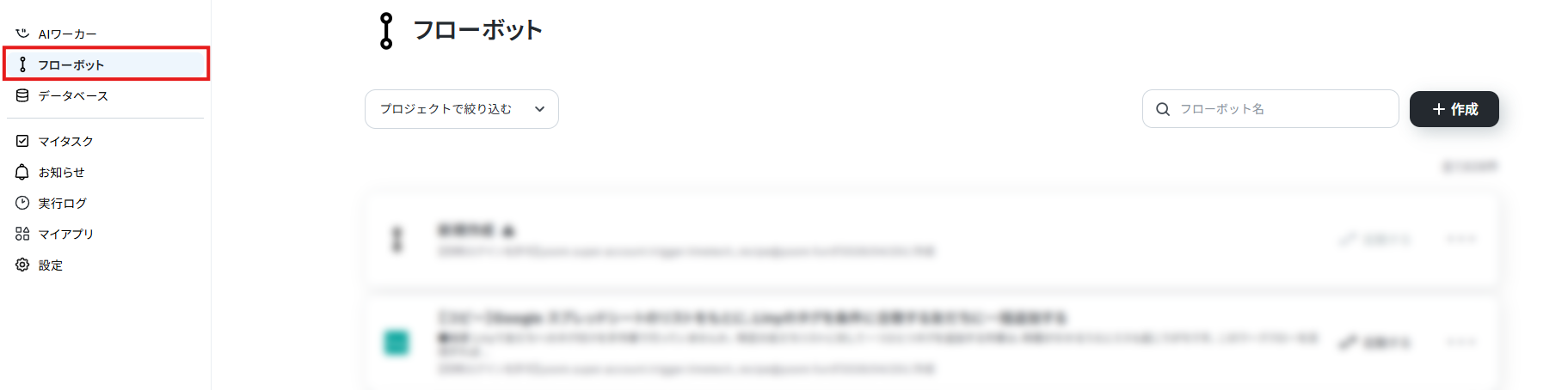 コピーしたテンプレートは、サイドメニューの「フローボット」から確認できます。
