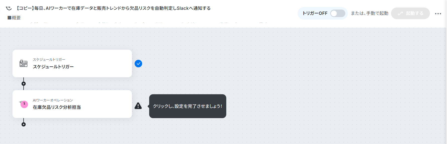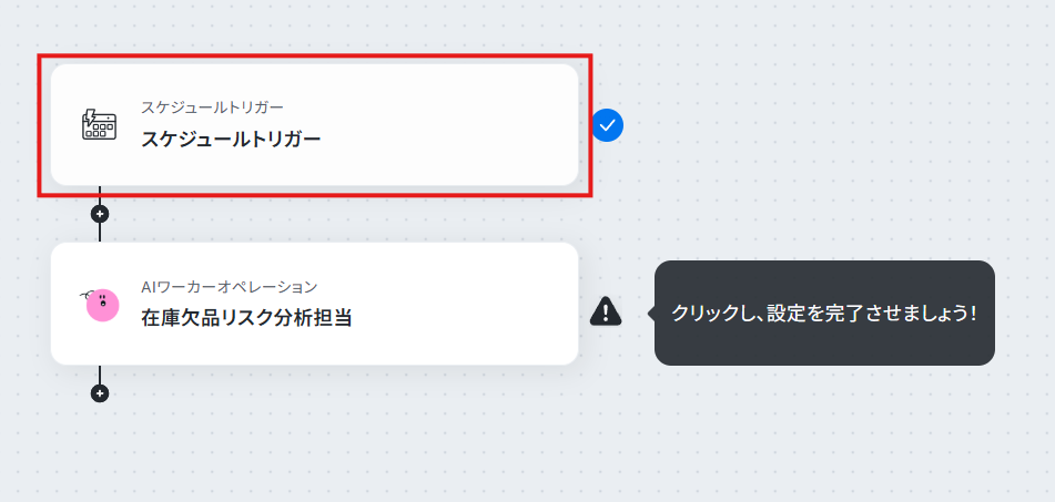早速、先ほど作成したAIワーカーをスケジュールトリガーと組み合わせていきましょう!