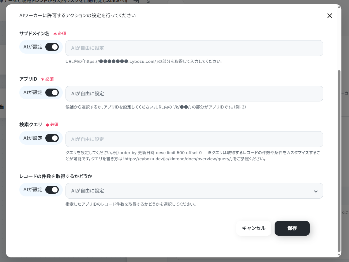 また、注意点やルール、判断基準などを設定しておくことでAIワーカーの精度を高められます。