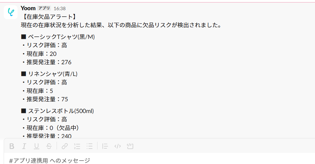 本記事では、AIエージェントを活用して在庫データの分析から欠品アラートの通知までを自動化する方法について解説しました。
