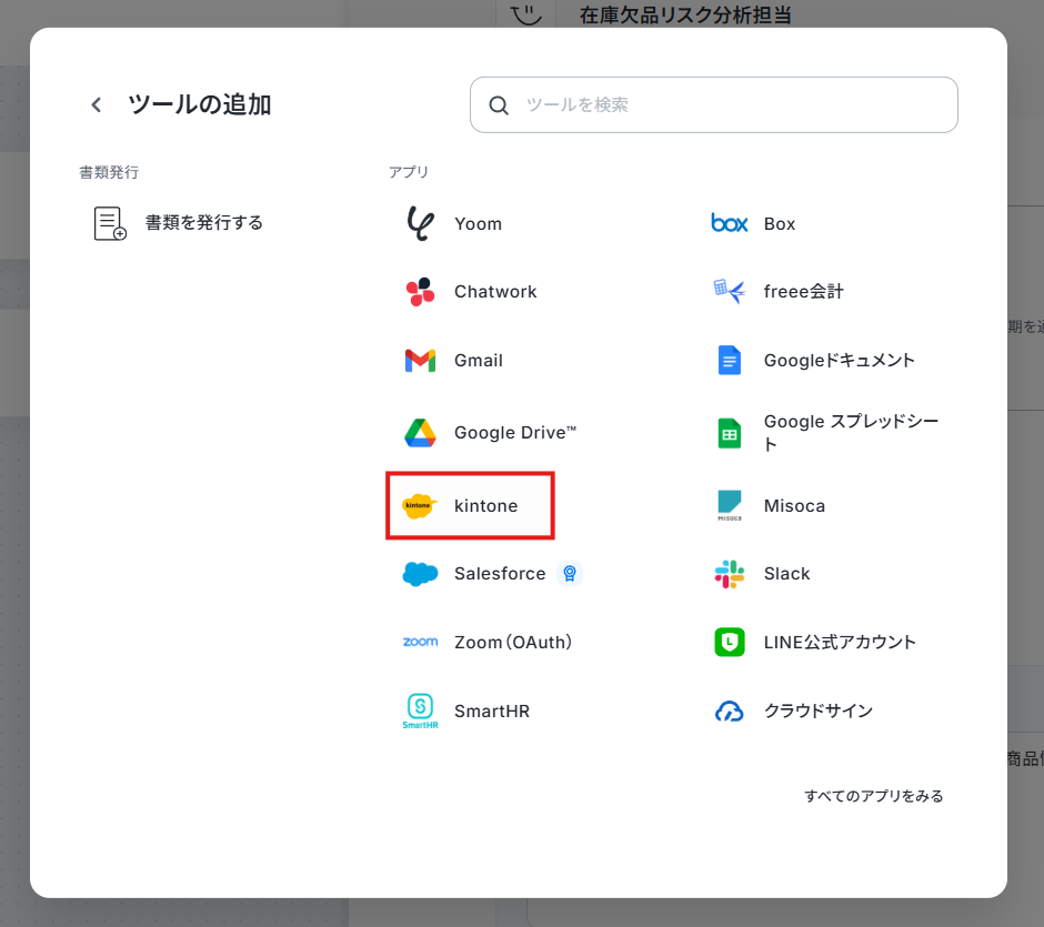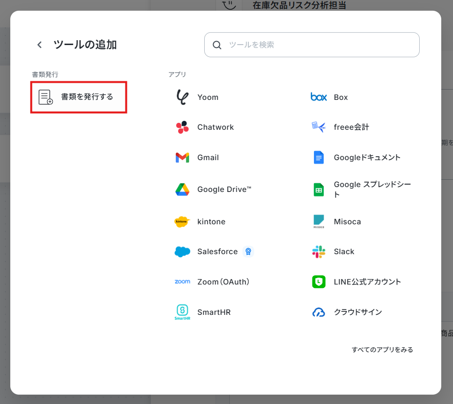 2. AIワーカーの使用ツールに「書類を発行する」を追加します。