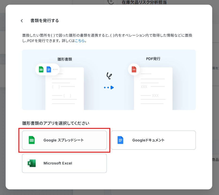 3. 雛形書類のアプリを選択し、雛形書類を設定します。