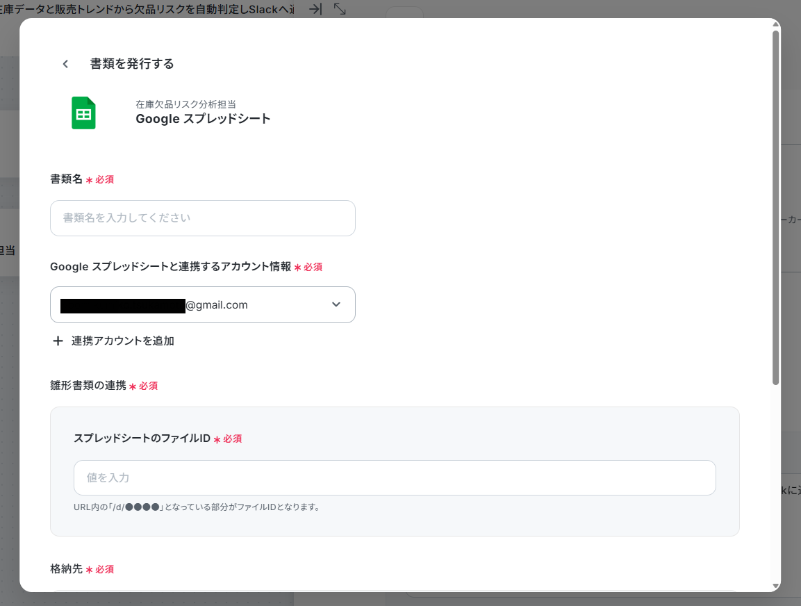 Google スプレッドシートのアクション設定