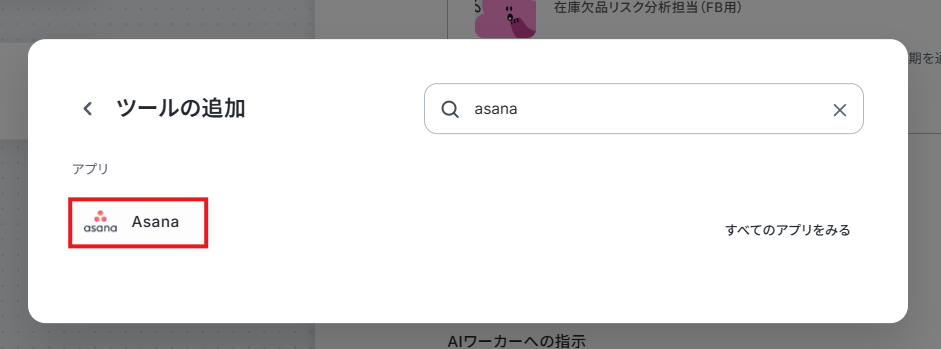 1. AIワーカーの設定変更画面で使用するツールに「Asana」を追加。