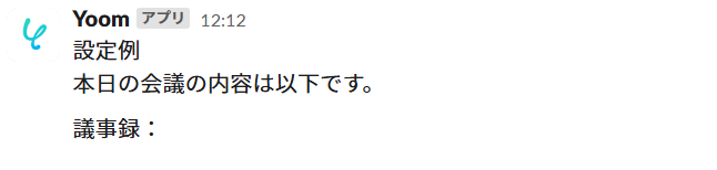 今回はファイルなどが取得できていないため、要約や議事録の内容は反映されていませんが、実際に設定した通りに入る想定です。