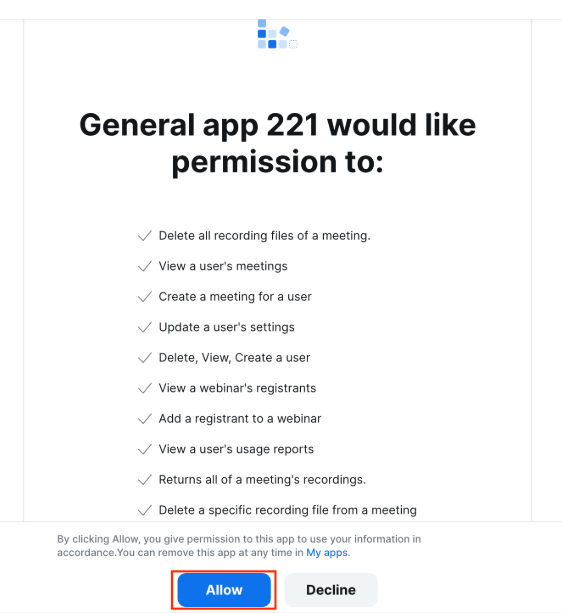 以下画面が出てきたら、青ボタンの「Allow」をクリックです。