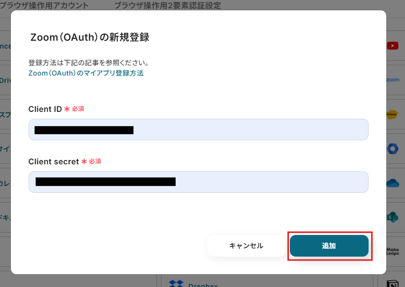 まずは「Zoom」と「Slack」のマイアプリ登録を行っていきます。