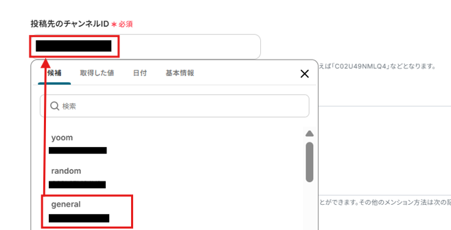 投稿先のチャンネルIDを候補から選択してください。