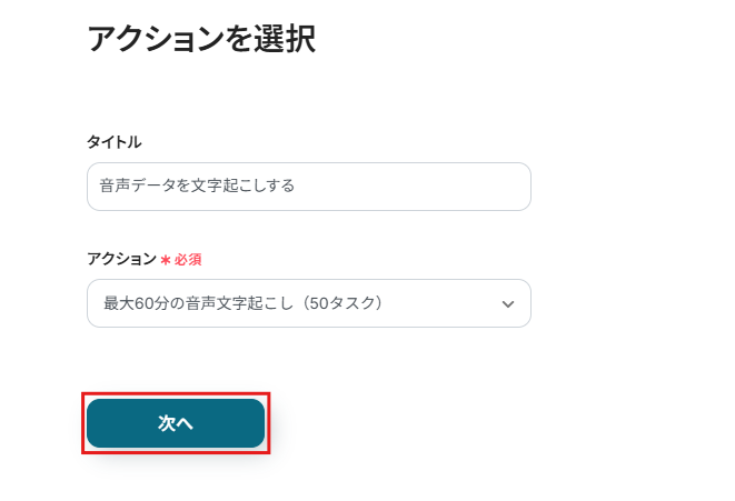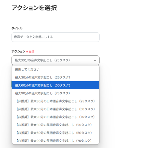 今回は「最大60分の音声文字起こし(50タスク)」に設定しました。