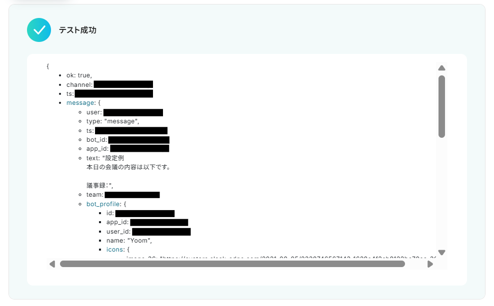 成功すると、設定した通りにSlackに通知が届きます。