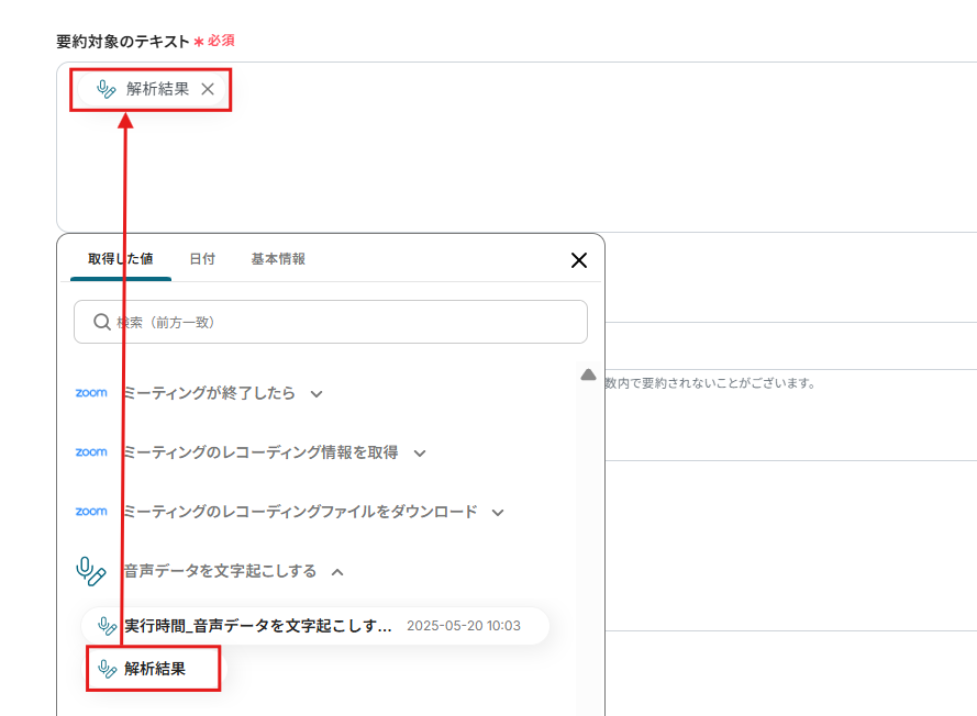 要約対象のテキストには、解析結果を入れましょう。