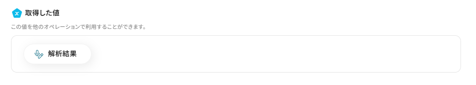 文字起こしの解析結果は、「解析結果」の右側に出現します。