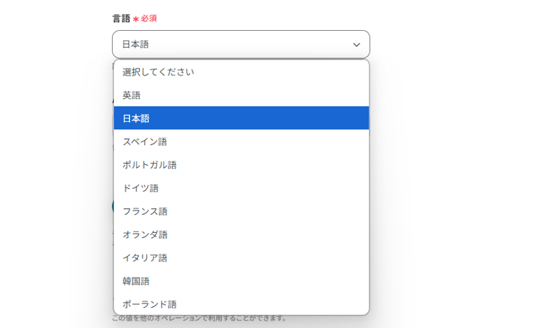 音声データを文字起こしする際の言語を選びましょう。