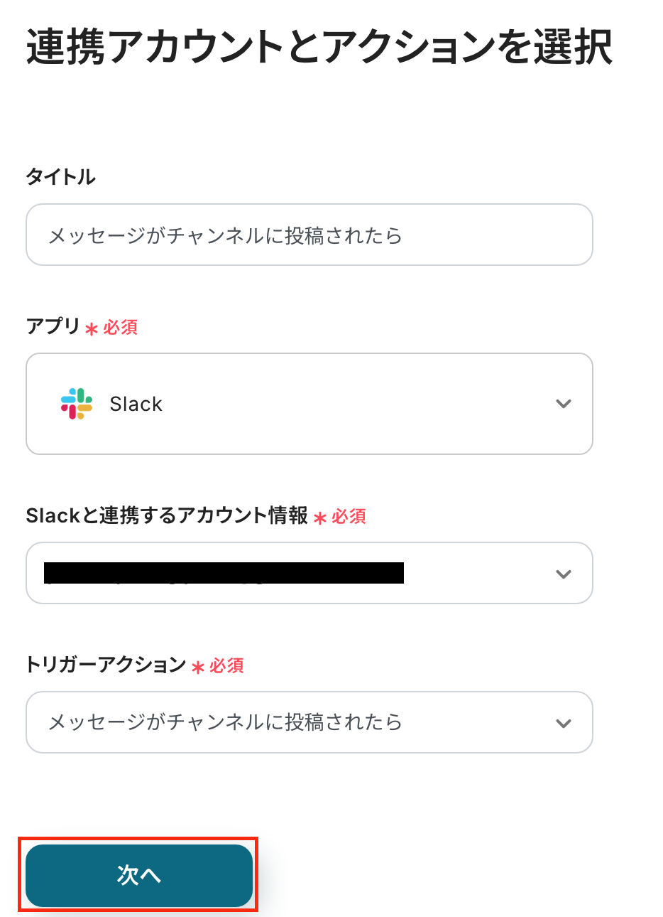 ステップ3:Slackのトリガー設定