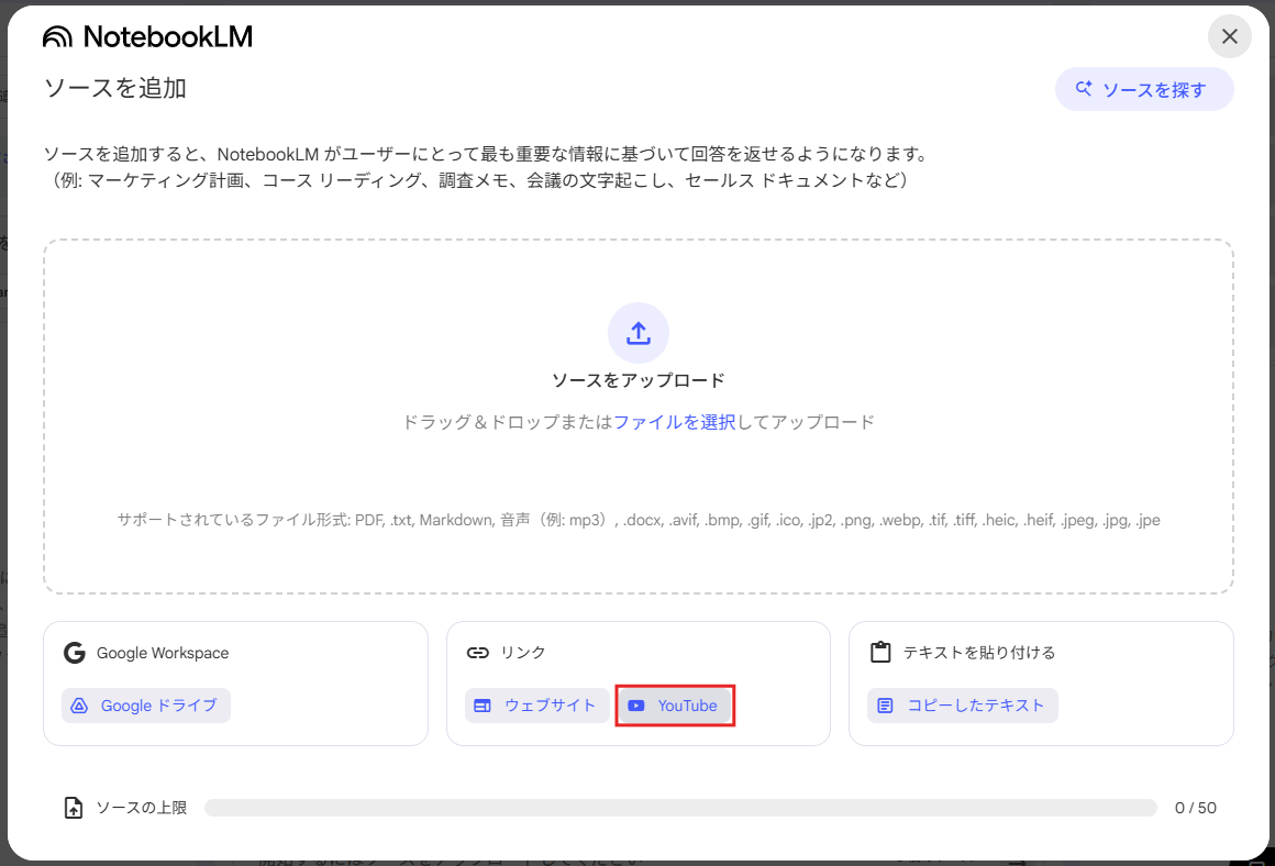 テキストやPDFの解析に加え、YouTube動画の内容を要約・分析する機能も備えているため、本記事ではこの動画活用機能に焦点を絞って検証を進めていきます。