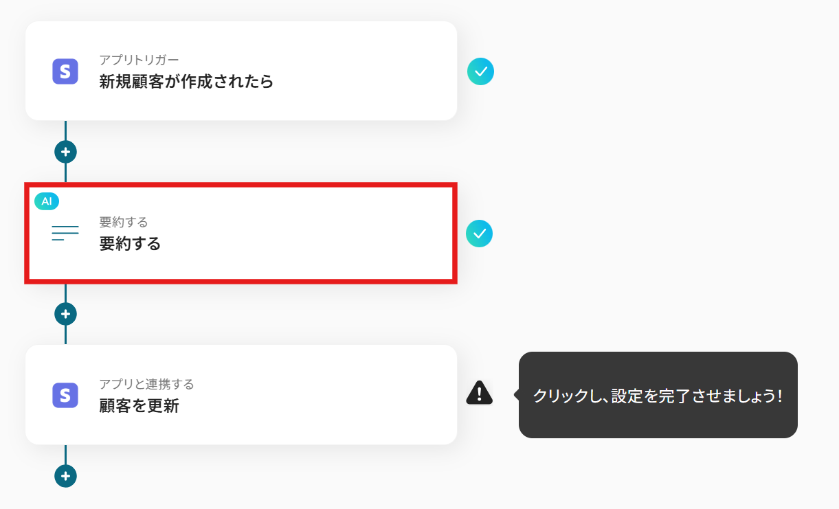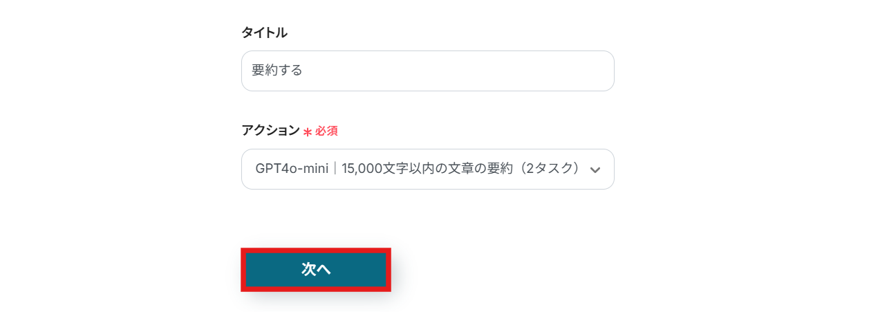 この連携は、AIによるデータ加工処理を含むパターンのため、柔軟な要約設定が可能です。