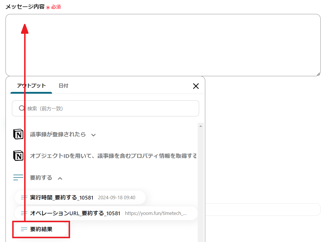 これによりNotionを開いて確認する手間が省け、重要な部分のみ要約してTalknoteに通知することも可能です。