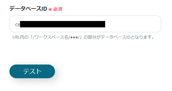 データベースIDはNotionのURLからコピーし、上記のボックス内にペーストをしてください。