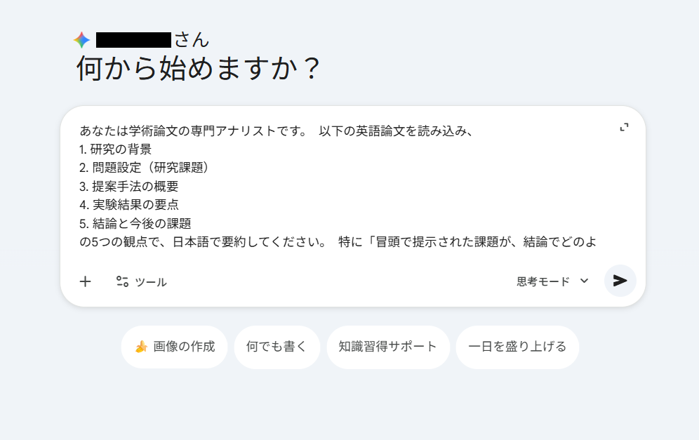 ※論文の解釈におすすめの、思考モードを選択しています。利用状況により制限がかかる場合があるため、ご利用には注意が必要です。