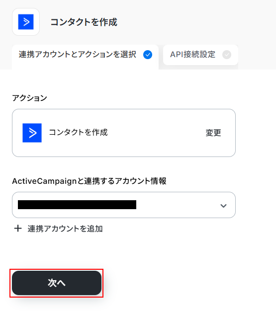 ステップ4:ActiveCampaignにコンタクトを作成する設定