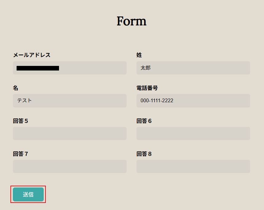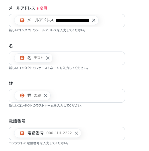 ※今回はメールアドレス、姓、名、電話番号のみを設定していますが、項目は自由に設定してください。