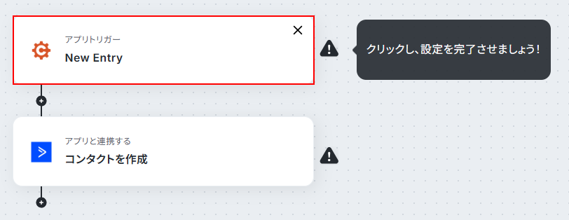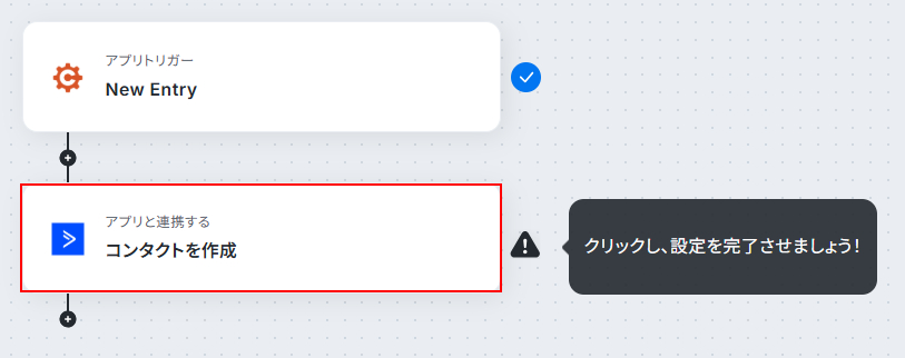 はじめに、Cognito FormsとActiveCampaignをYoomと連携します 次に、トリガーでCognito Formsを選択し、「New Entry」というアクションを設定します 最後に、オペレーションでActiveCampaignを選択し、「コンタクトを作成」アクションを設定します ※「トリガー」:フロー起動のきっかけとなるアクション、「オペレーション」:トリガー起動後、フロー内で処理を行うアクション■このワークフローのカスタムポイント