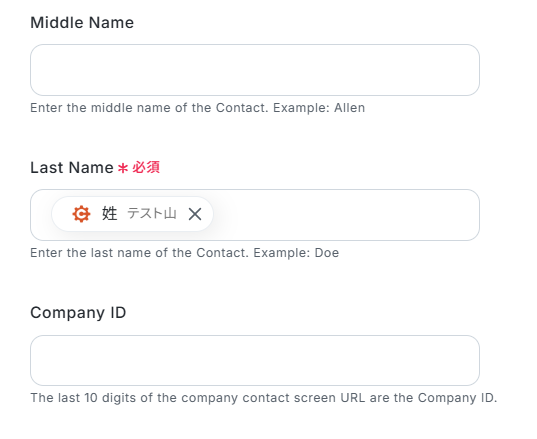 - Clio Manageで連絡先を作成するオペレーションでは、どの情報をどの項目に登録するかを設定する必要があります。