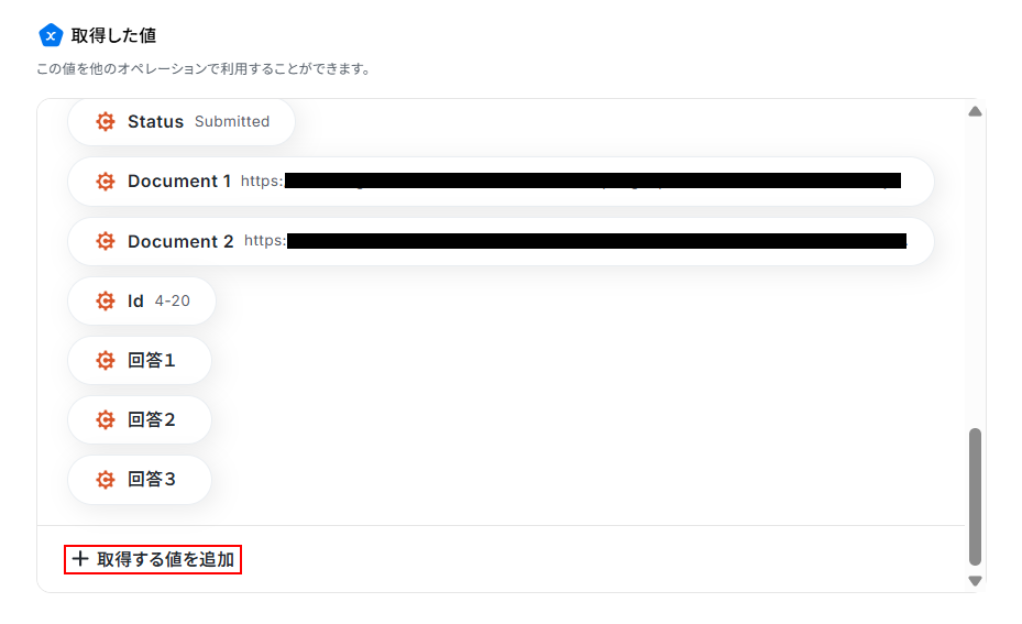 今回使用するCognito Formsは自由に回答を得られるため、特定の取得した値が設定されていません。