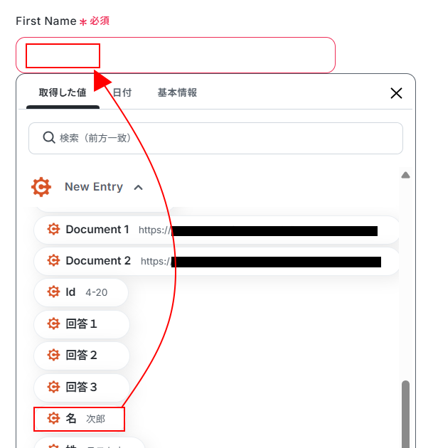 そのため、利用したい値が取得した値の項目内に表示されていない場合は値を追加する必要があります。