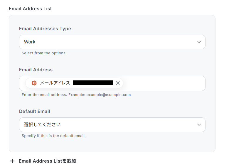 Email Address TypeにはデフォルトでWorkが選択されています。