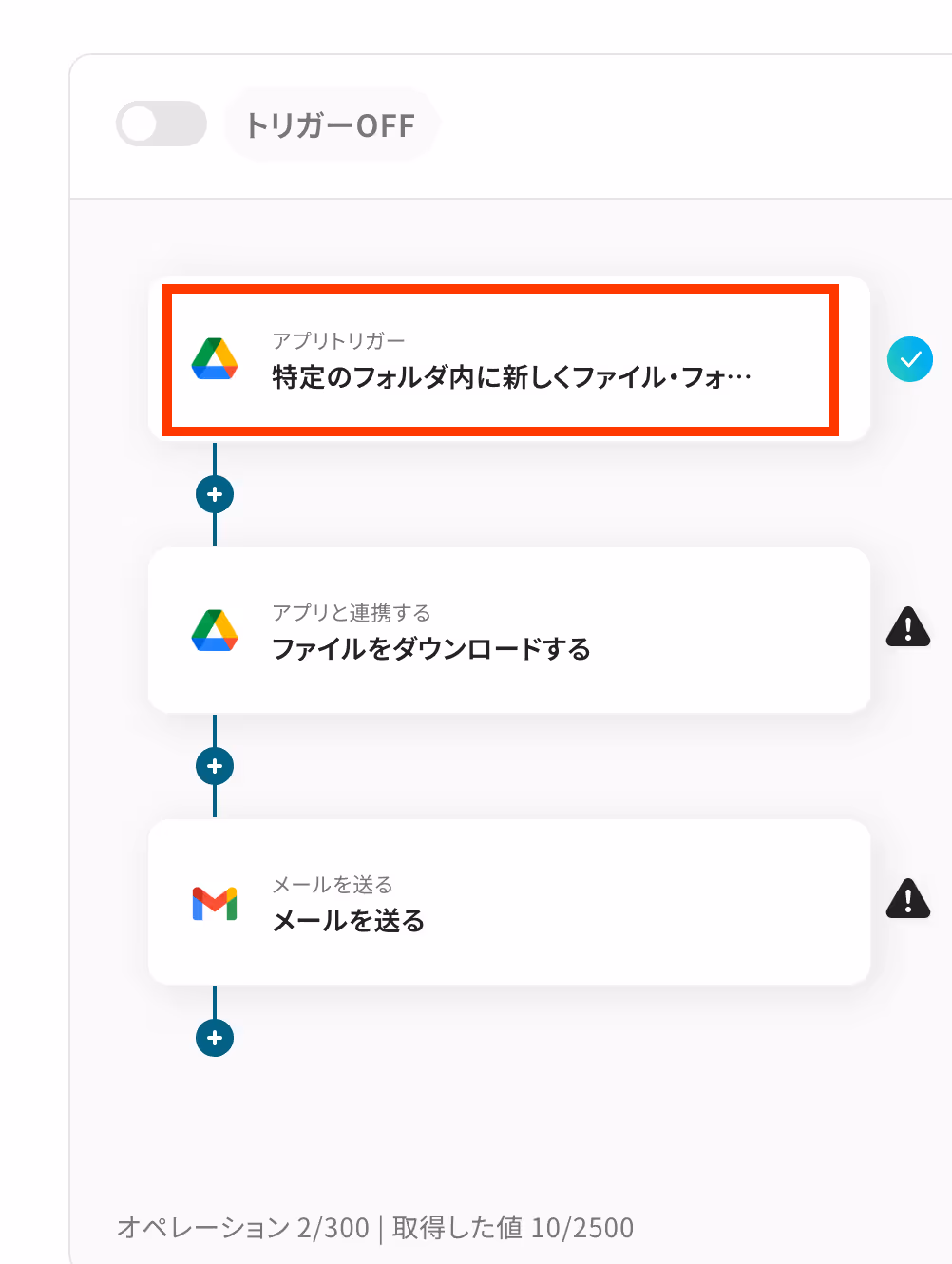 それでは、実際にGoogle DriveとGmailを連携した自動化フローを作成してみましょう。
