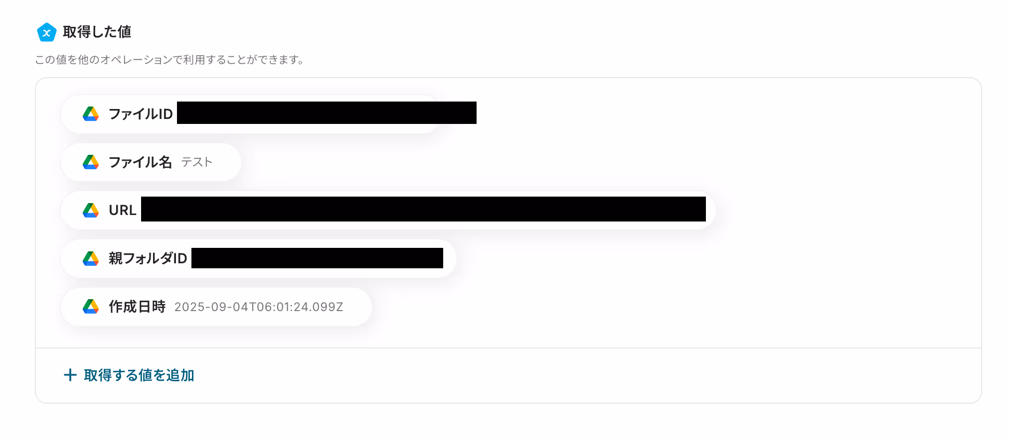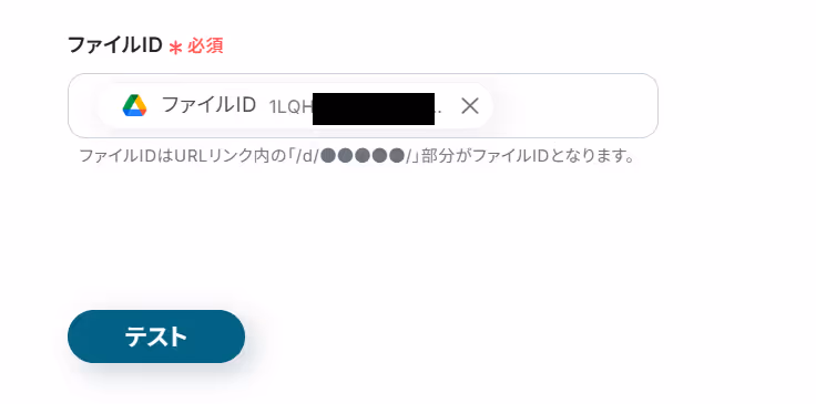 ファイルIDは、前項で取得した値から、「ファイルID」を選択します。