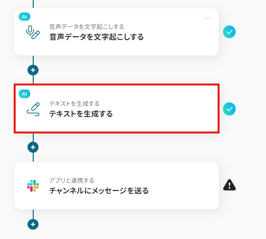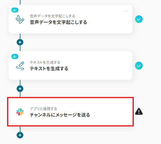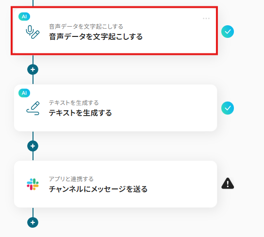 ※・音声を文字起こしするAIオペレーションは、チームプラン・サクセスプラン限定の機能です。フリープランやミニプランでセットするとエラーになってしまうので、ご注意ください。